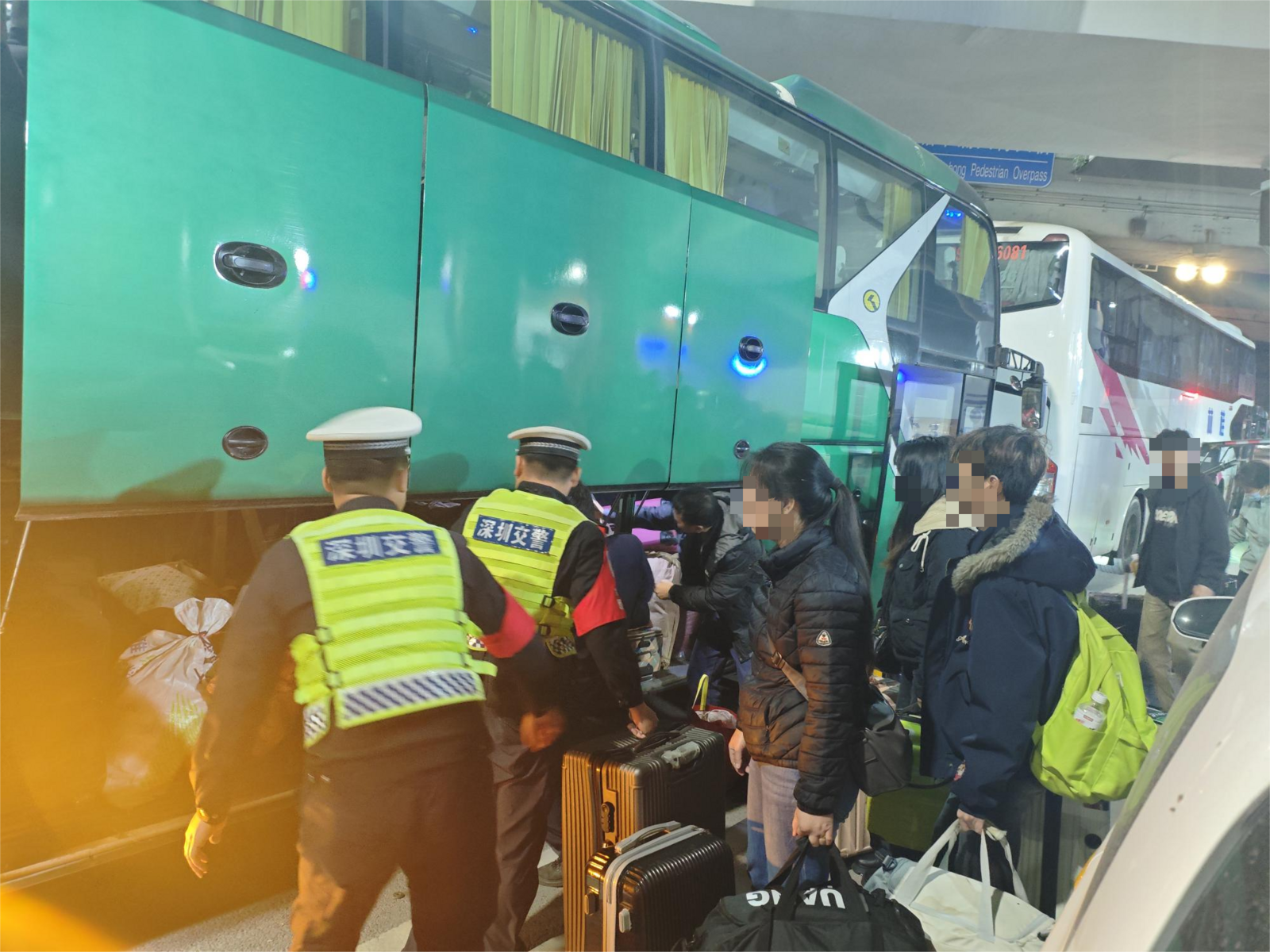 2026年2月8日20时40分许,宝安交警在辖区洪桥头春运执勤点开展夜间勤务,对过往车辆进行安全检查时发现,一辆号牌为桂C****1、由深圳开往桂林方向的大型普通客车涉嫌超员,随即示意该车靠边停车接受检查。经现场仔细核查、清点人数确认,该号牌车辆核载人数为47人,实际载客51人,超员4人。为及时消除安全隐患,严防事故发生,执勤警力现场对车辆驾驶人进行普法教育,严肃告知其超员违法行为的危害性及相关法律责任,并依法作出相应处罚。同时,考虑到春运期间乘客返乡心切,为不耽误乘客行程,交警第一时间协调调度了一辆核载55人的合规大型客车抵达现场,有序引导涉事车辆上的所有乘客转移至转运车辆,全程做好引导、安抚工作,确保每一位乘客都能平安、顺利前往目的地,温暖踏上返乡之路。