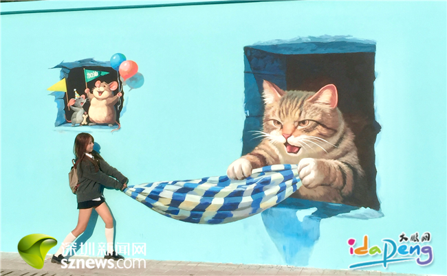 深圳首条百米3D萌宠墙24小时免费开放