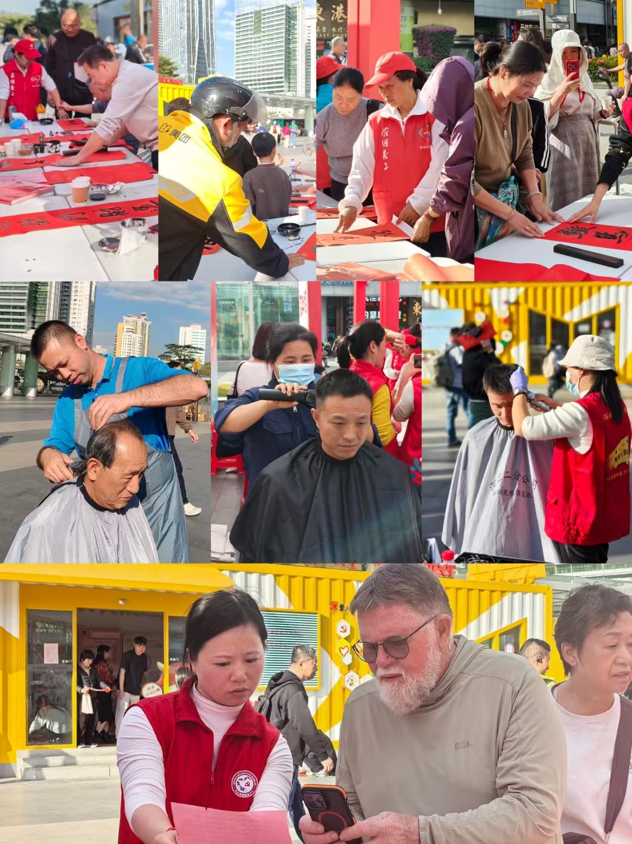 新春佳节临近,罗湖区春运专班还在罗湖火车站广场举办了“福马迎新”便民服务活动,以多元服务传递社区温情。活动现场设有春联书写、爱心义剪、出行咨询等专区。八位书法老师现场挥毫送福,义剪师傅娴熟理发,党员志愿者热情答疑,吸引了大量旅客驻足参与。此次活动通过整合辖区资源,以“小而实”的便民举措丰富旅客出行体验,让往来港人、外籍友人与广大旅客在归途之中,感受到深港融合的社区温度,展现罗湖口岸区域友好、便利的国际服务环境。