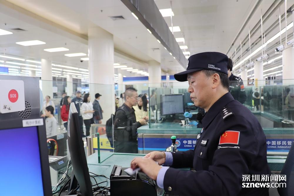 验证台上,龙仕新以熟练的动作、温和的笑容,为络绎不绝、归心似箭的旅客办理出境查验手续。今年的春节可能是他41年从警生涯最后一个值守国门的春节。