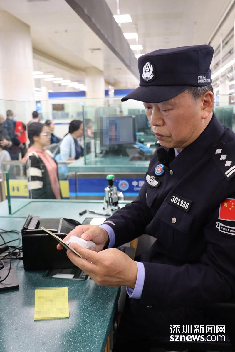 两位摩洛哥旅客从深圳福田口岸出境,他收下旅客递过来的护照,点头致意欢迎,“Welcome to China”,开始全神贯注查验护照和旅客信息。在数字化查验主流的今天,这“三件套”看似老旧,却承载着一种温度与精度并存的守护——在细微处倾注全部的专业与敬畏。