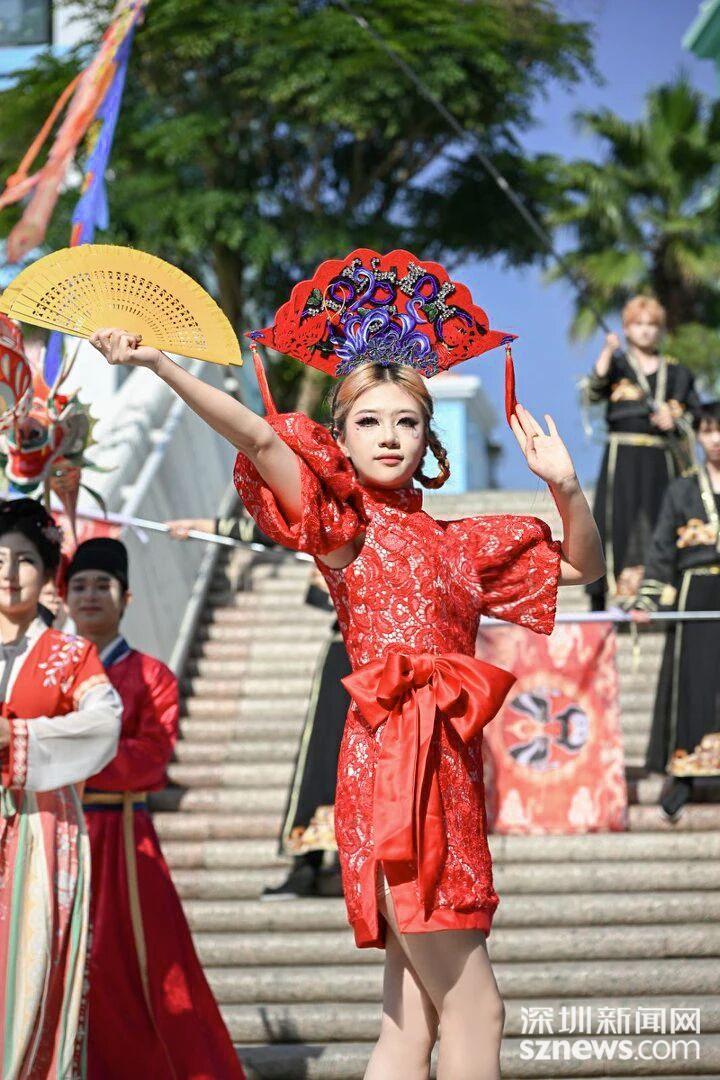 梅沙宋彩道更是成为国风打卡地,每日15:00-19:00,身着锦绣华服的演员踏韵而来,鹏城国潮演艺轮番上演,海风轻拂间,传统歌舞、特色演绎让市民游客在山海之间感受本土国风的独特魅力。大梅沙8号仓奥特莱斯则将传统年俗与新潮玩法结合,大年初一到初五期间,非遗醒狮腾跃贺岁,赛博舞狮科技感拉满,更有科技财神现场互动,让传统年味与现代潮流碰撞出别样火花。
