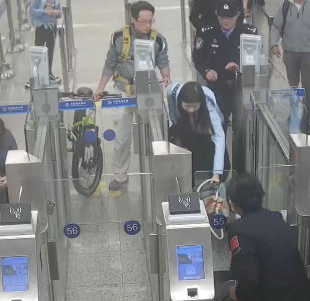 当晚8时28分,年过六旬的香港籍邓女士在福田口岸出境大厅智能快捷通道通关时,因携带行李较多、脚步不稳,被行李绊倒,重重摔倒在通道内地上,一时无法动弹。“手……手动不了!”剧痛让她声音颤抖,其同行的女儿从隔壁通道冲过来,却被通道中行李阻隔,手足无措,焦急万分。