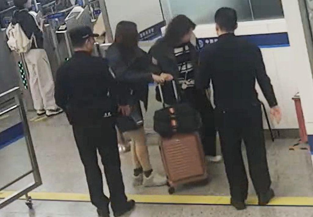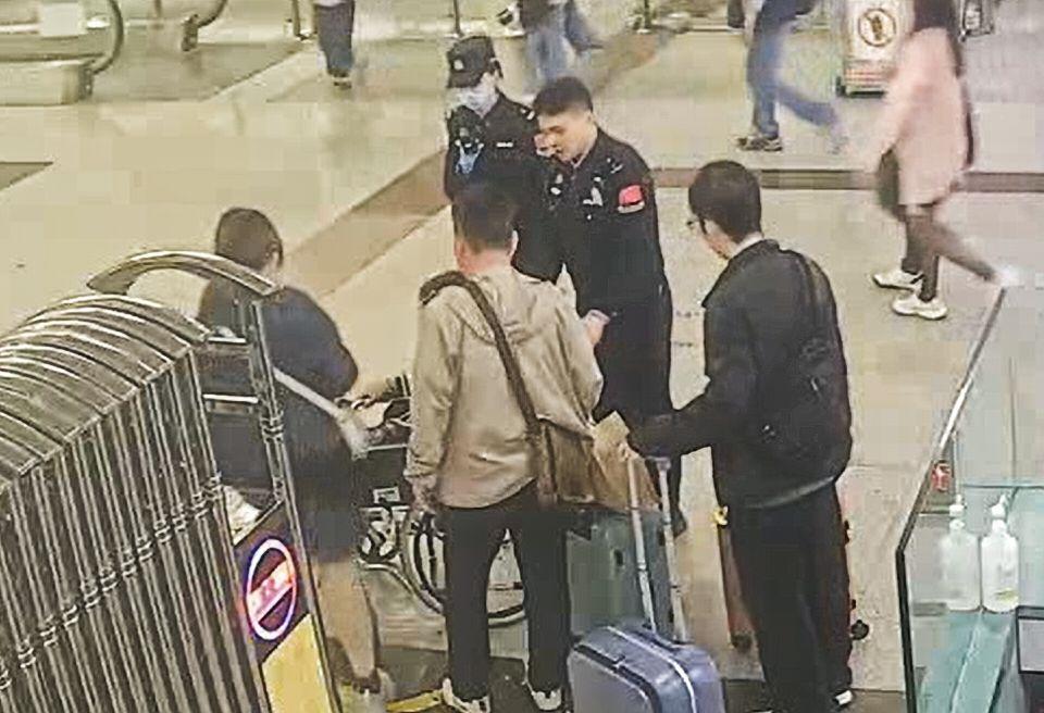 皇岗边检站民警第一时间前往智能快捷通道帮助摔伤香港女士。(来源:皇岗边检站)