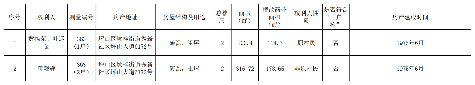 根据《深圳市坪山区坪山大道综合改造工程(北段)》项目的相关规定,我办事处已对本项目范围内房地产进行了相关确权工作,现将确权结果予于公示:
