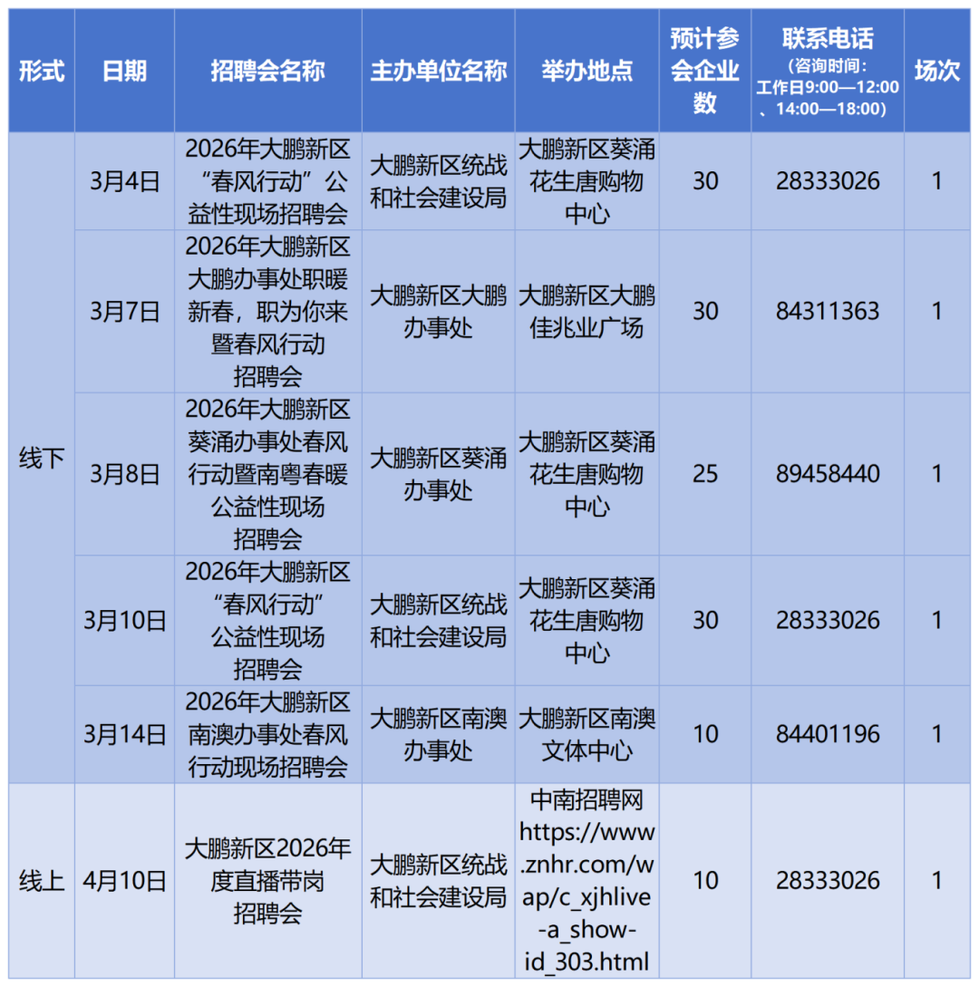 为助力大鹏新区旅游高质量发展提质年,全力保障企业用工需求,帮助每一位奋斗者锁定新年第一份心仪好工作,大鹏新区2026年“春风行动”即将开启!