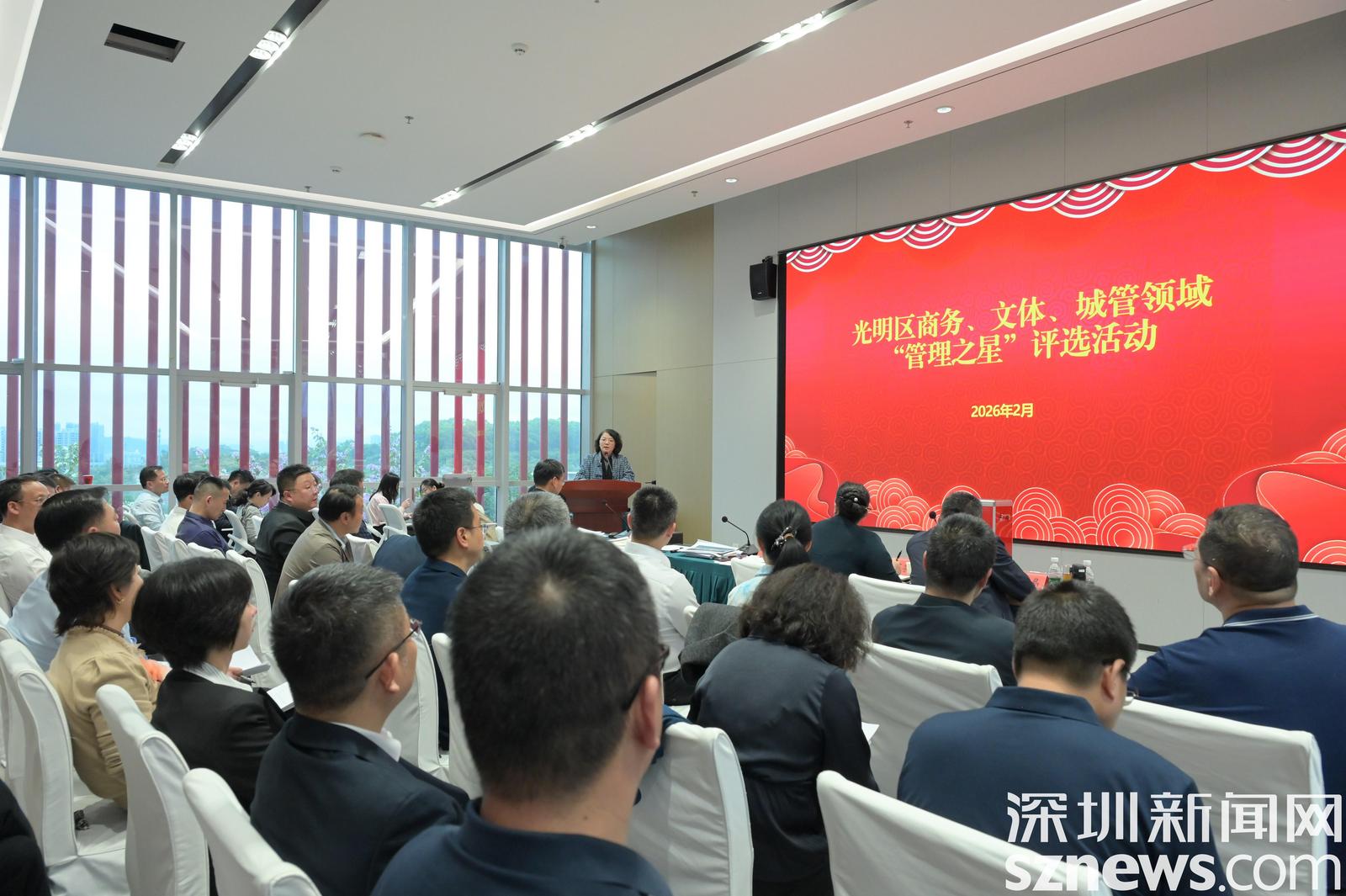深圳新闻网2026年2月28日讯(记者 林斯涵)春风拂过虹桥,绿意浸润光明。在草木蔓发的美好时节,2月28日,2026年光明区商务、文体、城管领域“管理之星”评选活动在虹桥自然教育中心温情启幕。这座藏在绿意里的自然空间,见证着光明管理者们的实干风采,也凝聚起城市建设的奋进力量。