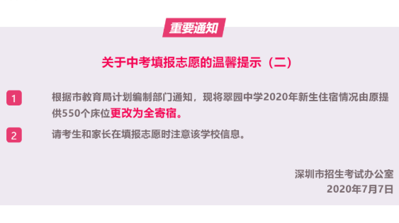 重要通知!翠园中学将为2020级所有新生提供住宿