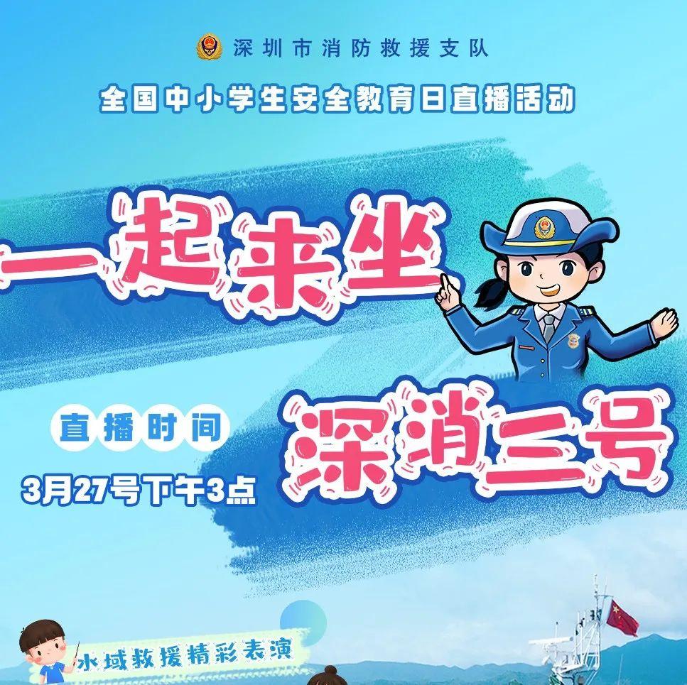 直播预告。2022.3.273月28日是第27个“全国中小学生安全教育日”在这个特殊的日子里深圳消防的“蓝姐姐“用镜头带大家一睹“深消三号”消防船的风采提到消防安全大家都知道陆地消防救援的是消防车而在港口和海岛上守护消防安全的——是消防船消防船到底长啥样有什么厉害之处。明天(27日)下午3 00在 ...