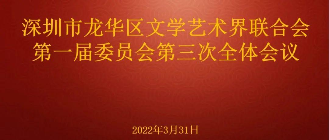 3月31日,深圳市龙华区文学艺术界联合会第一届委员会第三次全体会议在龙华文艺之家报告厅胜利召开,龙华区委常委、宣传部部长黄立敏,龙华区文学艺术界联合会第一届委员会委员出席会议,龙华区委宣传部副部长李晓文主持会议。会议传达学习习近平总书记在中国文联十一大、中国作协十大开幕式上的讲话精神,总书记重要讲 ...