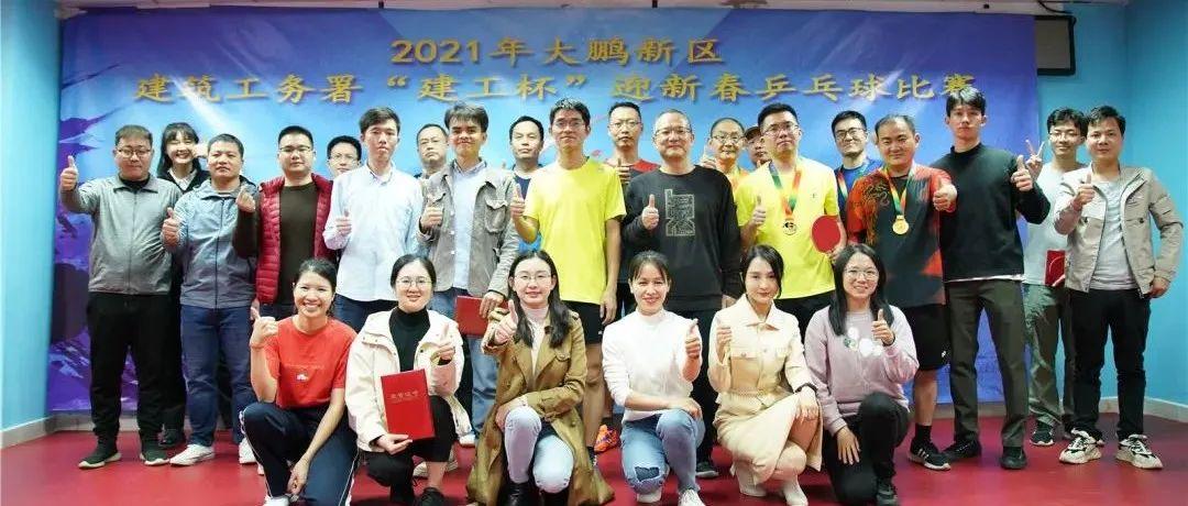 12月22日晚由大鹏新区建筑工务署工会举办的首届“建工杯”迎新春兵乓球比赛圆满落下帷幕。比赛采用三局两胜制,一局十一球,个人赛和团体赛分开进行,在新区建筑工务署工会的组织下,比赛紧张而有序地进行,参赛者遵守规则,裁判员执法公平、准确,赛出了风格,赛出了水平。个人赛冠军 宋仪力,亚军 彭世民,季军 ...