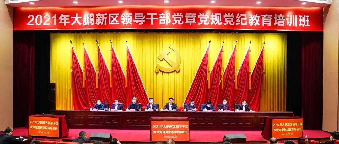 12月3日下午,2021年大鹏新区领导干部党章党规党纪教育培训班举行。培训班以“学党史悟思想,守纪律铸忠诚”为主题,深入学习贯彻党的十九届六中全会精神,以及习近平总书记“七一”重要讲话精神和关于全面从严治党重要论述,进一步增强“四个意识”、坚定“四个自信”、做到“两个维护”,永葆忠诚干净担当的政治 ...