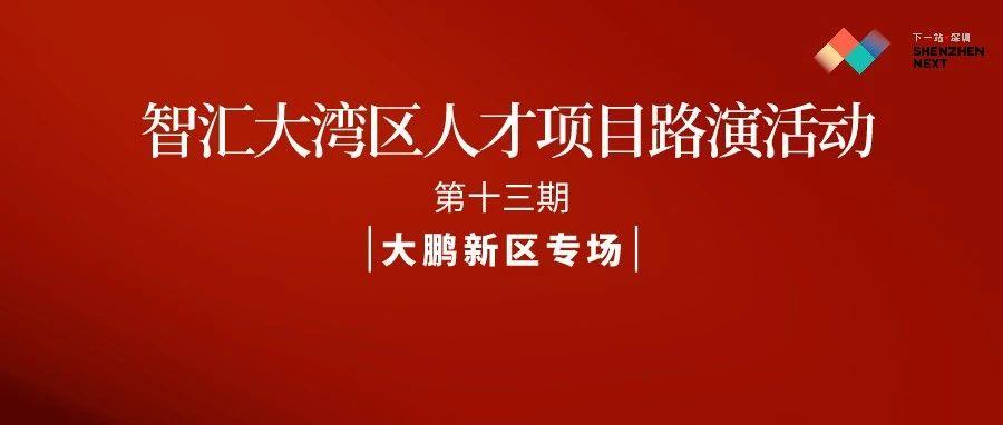 2021年度智汇大湾区人才项目路演活动第十三期将走进大鹏新区活动将围绕软件信息、生命健康、生物海洋、生态旅游、农业等领域筛选行业优质项目欢迎踊跃报名。同时也热烈欢迎相关领域投资和产业人士报名参会及推荐项目相关信息如下↓↓↓路演信息时间 2021年5月18日(星期二)14:00~18:00地点 深圳 ...