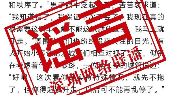 网传深圳一男子举着吊瓶阻止城管拉走电动车?消息不实!