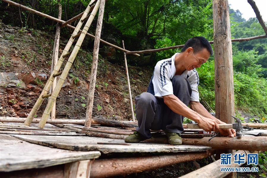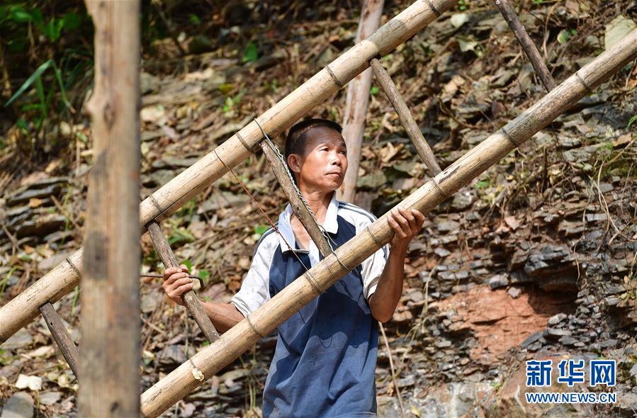 龙革雄在搭建鸡舍(8月16日摄)。 新华社记者 黄孝邦 摄