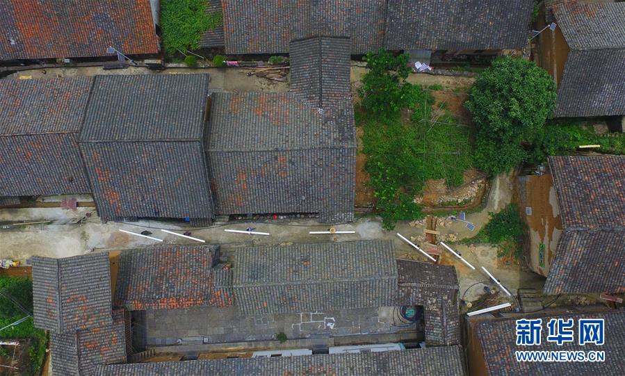 在广西融安县大良镇古兰村古兰屯,村民在修缮古民居(8月18日摄)。 新华社记者 黄孝邦 摄