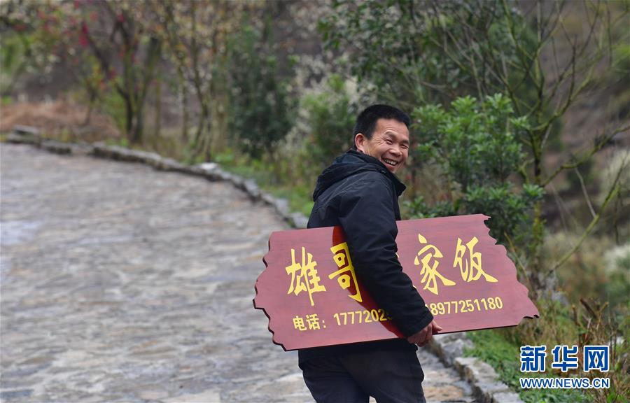 龙革雄在领取农家乐牌匾(3月5日摄)。 新华社记者 黄孝邦 摄