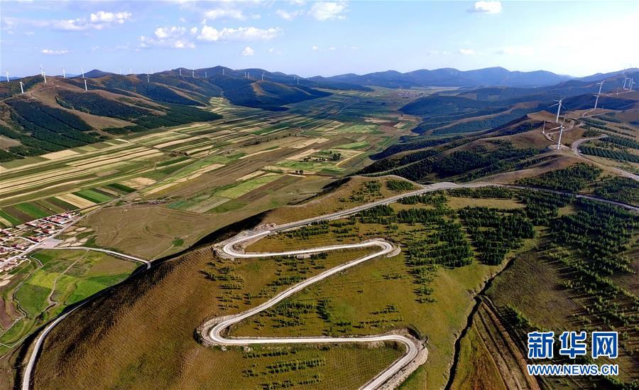 这是河北省坝上地区沽源县草原天路沿线风光(9月13日无人机拍摄)。中秋时节,河北省张家口坝上地区天高气爽,秋意正浓。新华社记者杨世尧摄