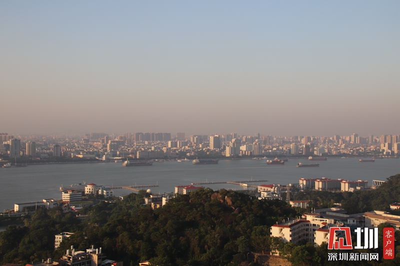 在汕头塔山景区俯瞰汕头市区。