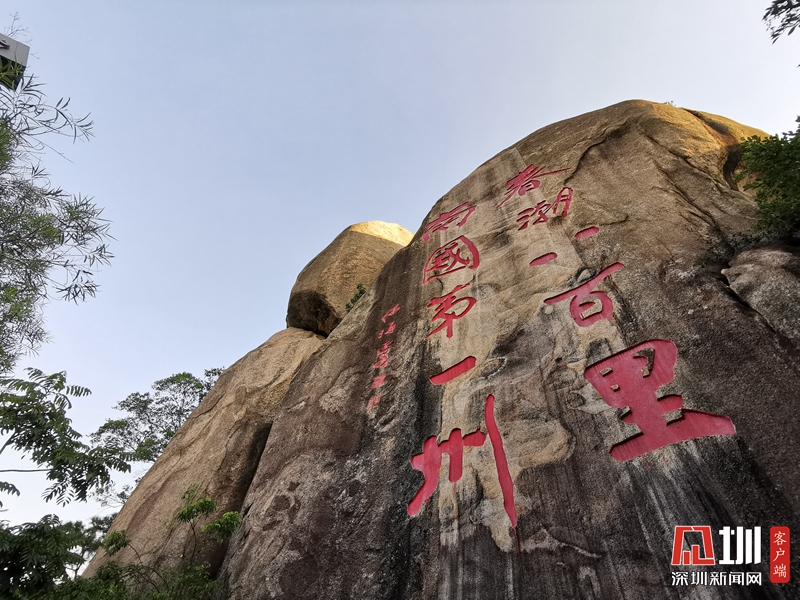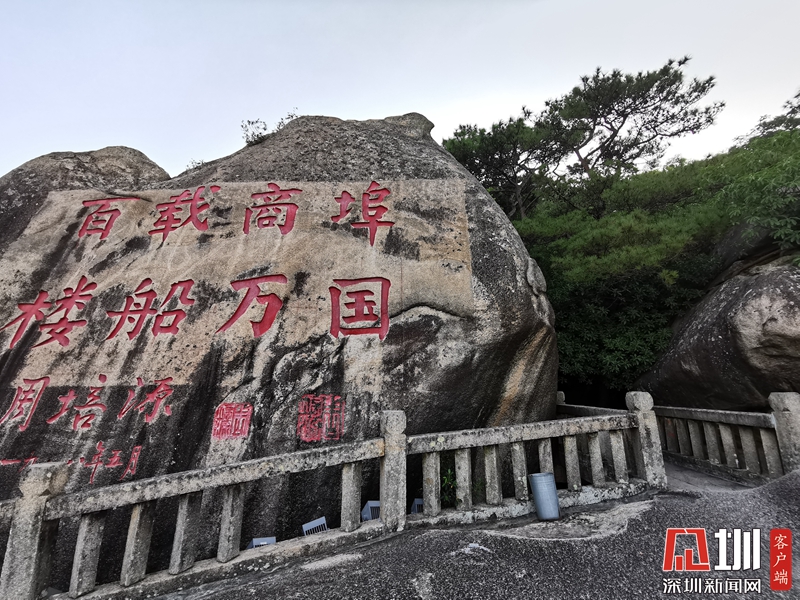 在汕头塔山景区山顶,极目远眺,汕头市区尽收眼底:新市区古城区并存,港口响起呜呜的轮船汽笛声。抚今追昔,塔山山腰上一块巨石上刻下的“百载商埠,楼船万国”即是对潮汕历史最好的概括。