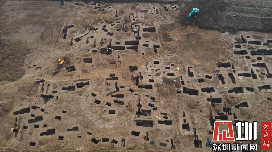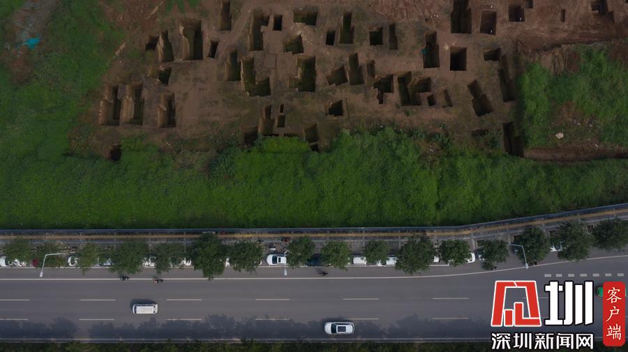 西安宜家工地挖出古墓空中俯瞰数百墓坑密密麻麻