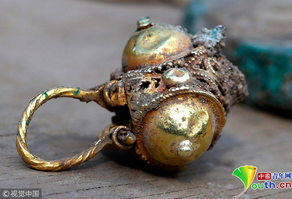 这是发掘的随葬品(11月15日摄)。