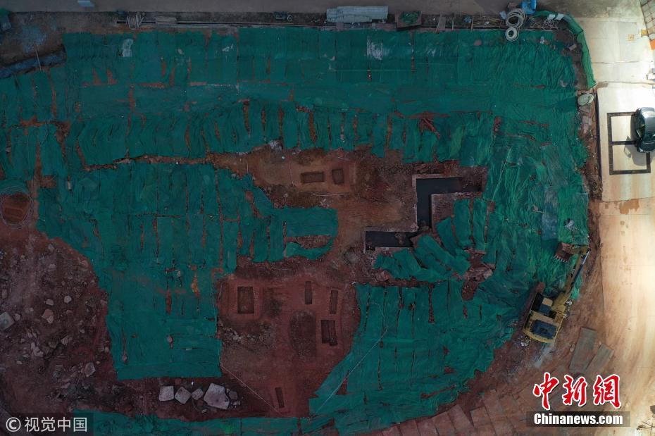 2019年10月12日,陕西西安,西安工地又一次挖出古墓。近日正在建设中的西安宜家荟聚购中心工地挖出数百古墓,密密麻麻。