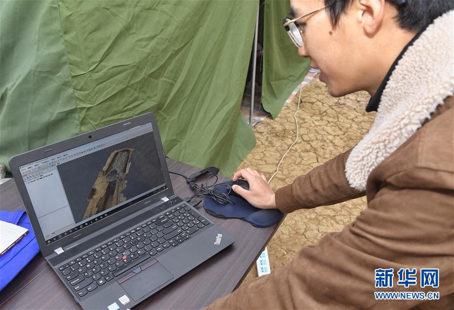 11月15日,考古人员在演示电脑制作的墓地三维图。