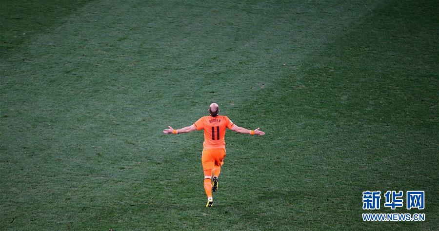 图为2010年7月6日,荷兰队球员罗本在与乌拉圭队的2010南非世界杯足球赛半决赛中庆祝进球。新华社记者廖宇杰摄