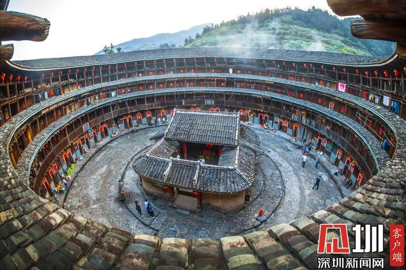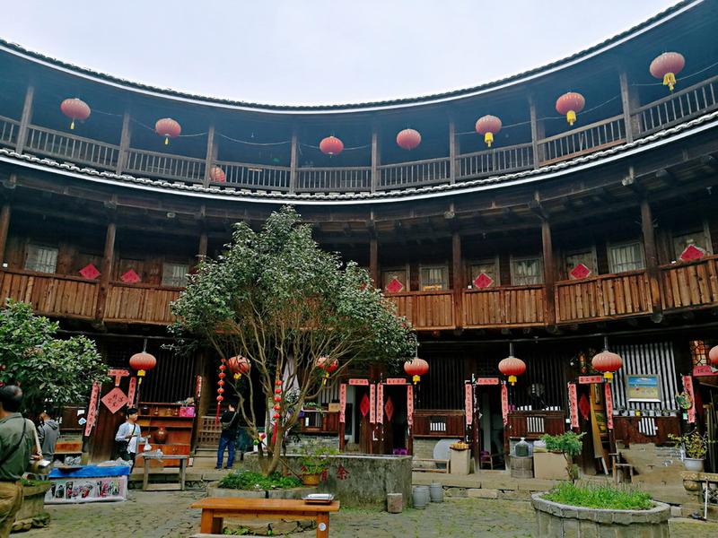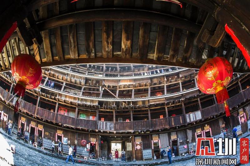 客家围龙屋里面,现在大部分被开发成旅游景点,有“土楼之王”称号的承启楼,每年就吸引大量的游客参观。李酮摄