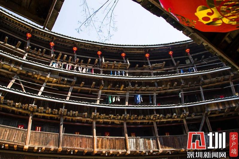 承启楼高四层,四圈上下400余间,“民居”系列邮票中福建民居就以承启楼为图案,进入土楼可以欣赏到典型的土家风情。李酮摄