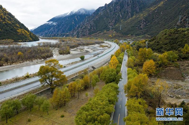 这是318国道西藏林芝市尼洋河谷段(10月27日无人机拍摄)。新华社记者江宏景摄