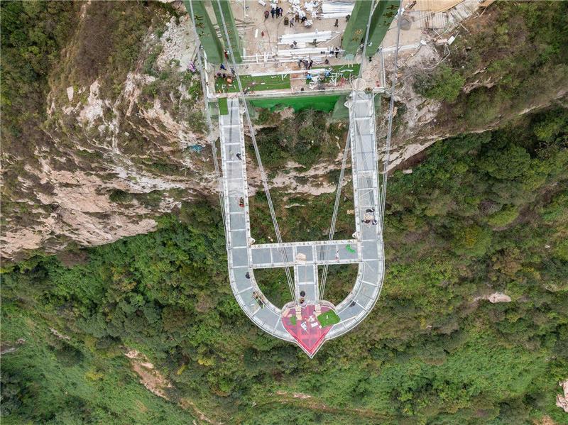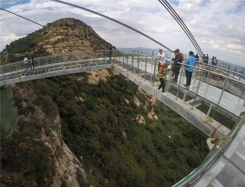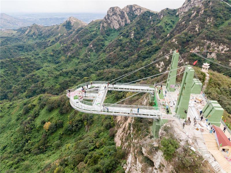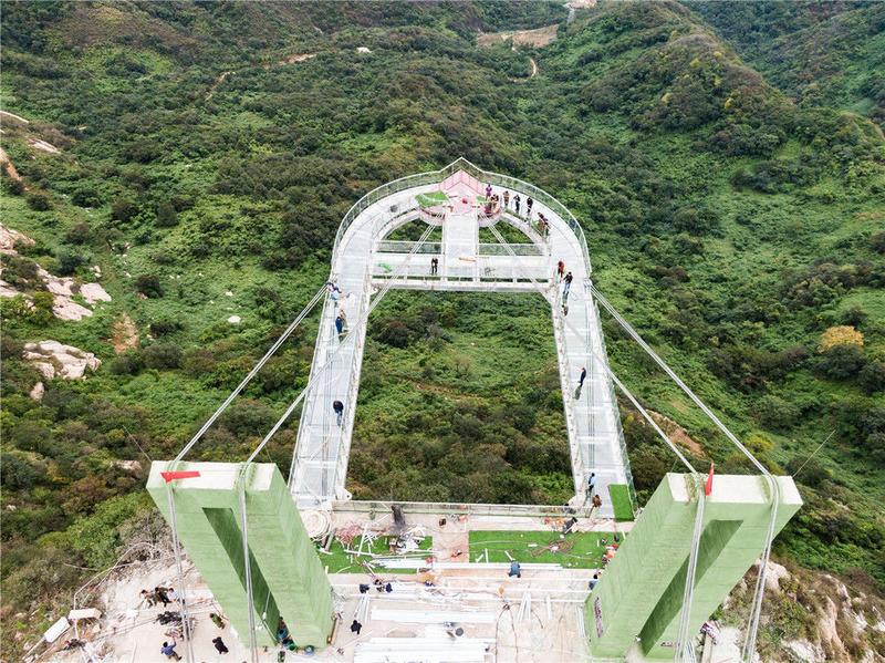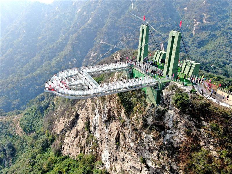 恐高勿入!“高空玻璃悬廊”在河南南阳七峰山落成