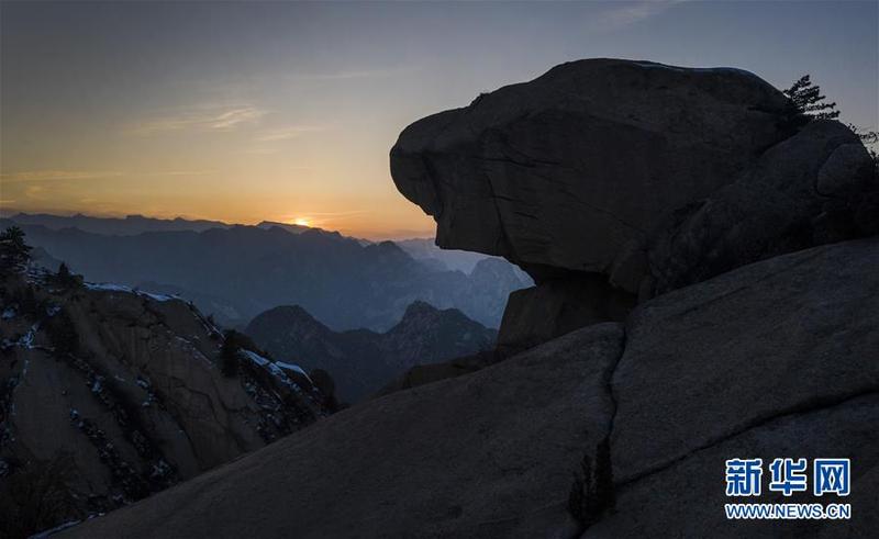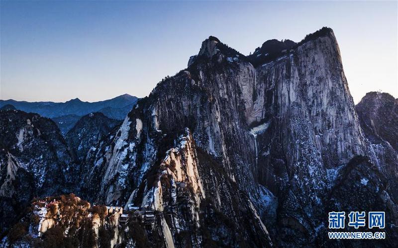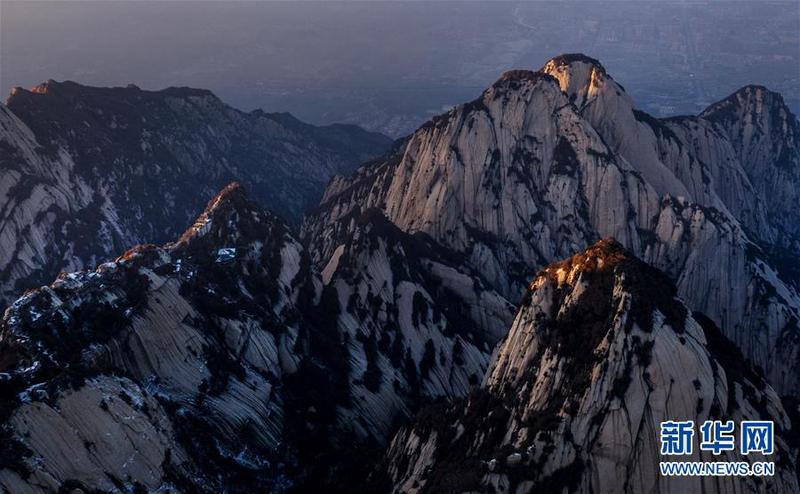 12月4日拍摄的西岳华山北峰。冬日的华山,在夕阳的映照下,绽放出炫目的色彩,与蓝色的天空、金色的晚霞构成壮美的画卷。新华社记者陶明摄