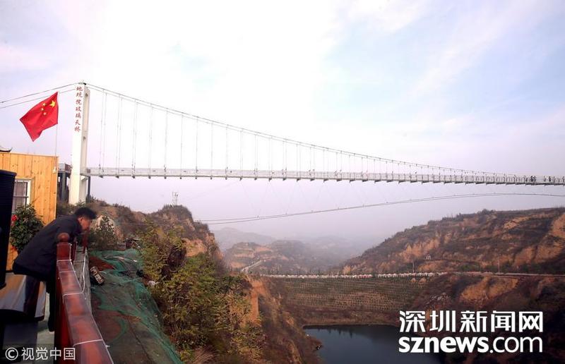 2018年11月13日,河南三门峡,位于陕州地坑院景区玻璃天桥。