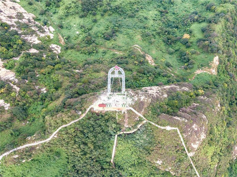 2019年9月21日,挂于绝壁上的“爱神之箭”高空悬廊在河南南阳七峰山正式落成迎宾,该玻璃悬廊,名为“云顶之心”。DF/视觉中国编辑/陈进