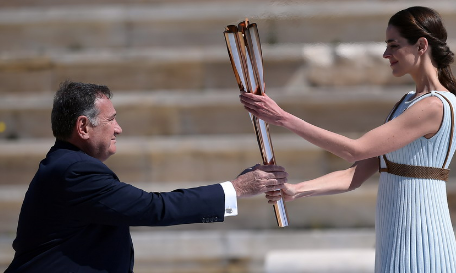 2020年3月18日,2020年东京奥运会火炬交接仪式在希腊雅典帕纳辛奈科体育场举行。