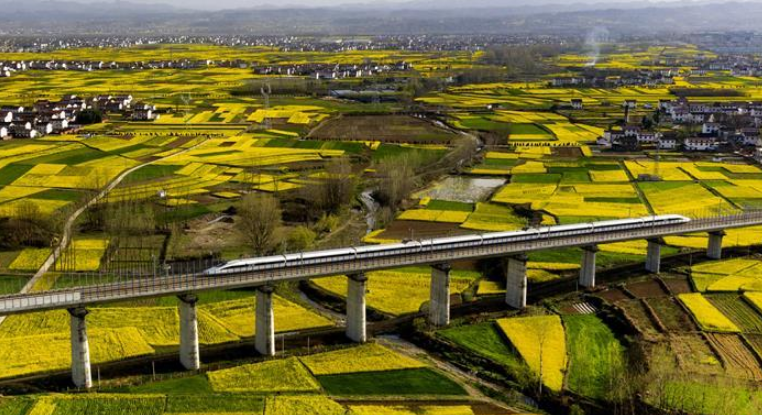近日,秦岭南麓的陕西省汉中市洋县14万亩油菜花竞相开放,美景如画。