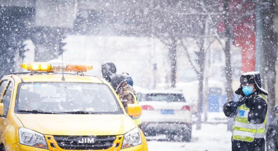近日,哈尔滨市迎来连续降雪降温天气,哈尔滨市公安局党员突击队队员、交警支队机动大队辅警李可心像往常一样,在负责的出入口值守。