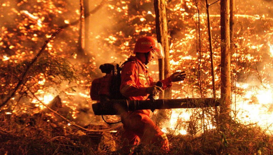 千名救援人员进山筑起“截火带” 广东佛山高明山火已得到控制