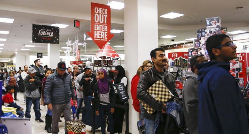 当日,美国众多商家竞相开展“黑色星期五”促销活动,吸引大批顾客抢购。