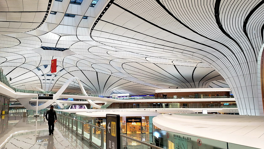 北京大兴机场横跨两市,距离天安门46公里,首都机场67公里,北京城市副中心54公里。