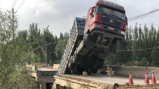 山东滨州:一大货车压塌限重4吨桥梁