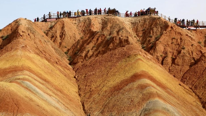 金秋时节,位于甘肃省张掖市临泽县的七彩丹霞景区进入旅游旺季,吸引众多游人纷至沓来。