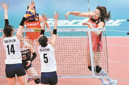 5月17日,在2018世界女排联赛(宁波北仑站)第三日比赛中,中国队以0比3不敌韩国队。