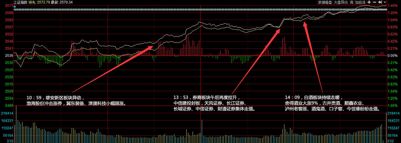 两市今日平开,随后氢燃料电池、券商板块攻势再起推动指数冲高,早盘两市震荡走强。午后指数持续拉升,大消费板块崛起,白酒板块受资金追捧领涨市场,市场人气比较活跃。