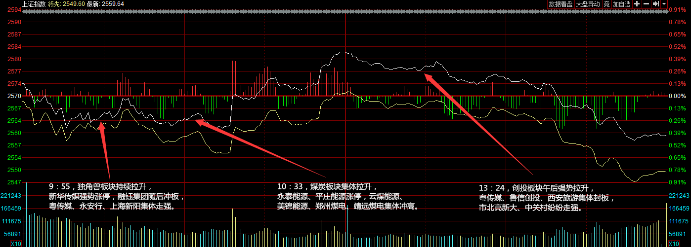 两市今日平开,随后两市开始走弱,昨日活跃的雄安、天津板块集体回调,煤炭、银行等板块早盘走强带领指数回暖。但午后指数单边下行,市场热点稀少,赚钱效应较弱。