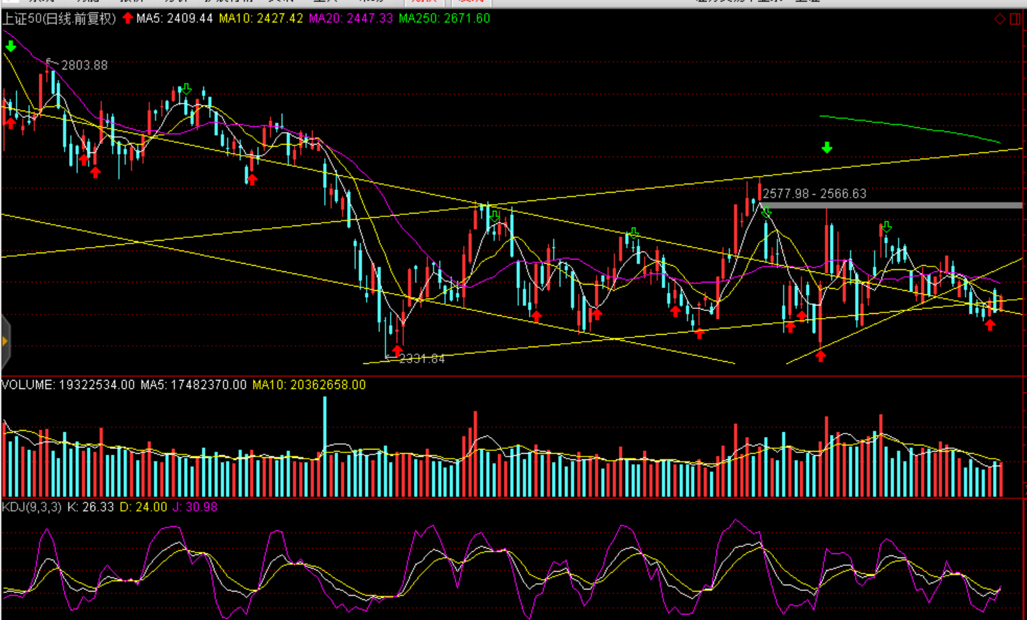 经过几天缩量调整,短期调整空间有限,如配合成交量放大则视为短期企稳信号,关注2575点支撑。