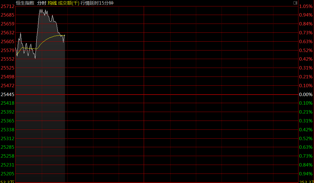 美股周三低开低走,盘中持续下挫,临近尾盘出现恐慌性抛售,道指暴跌逾800点。恒生指数开盘跌3.05%,报25392.9点。国企指数跌2.94%,报10135.47点。红筹指数涨2.52%,报4160.34点。大市盘前成交33.34亿港元。