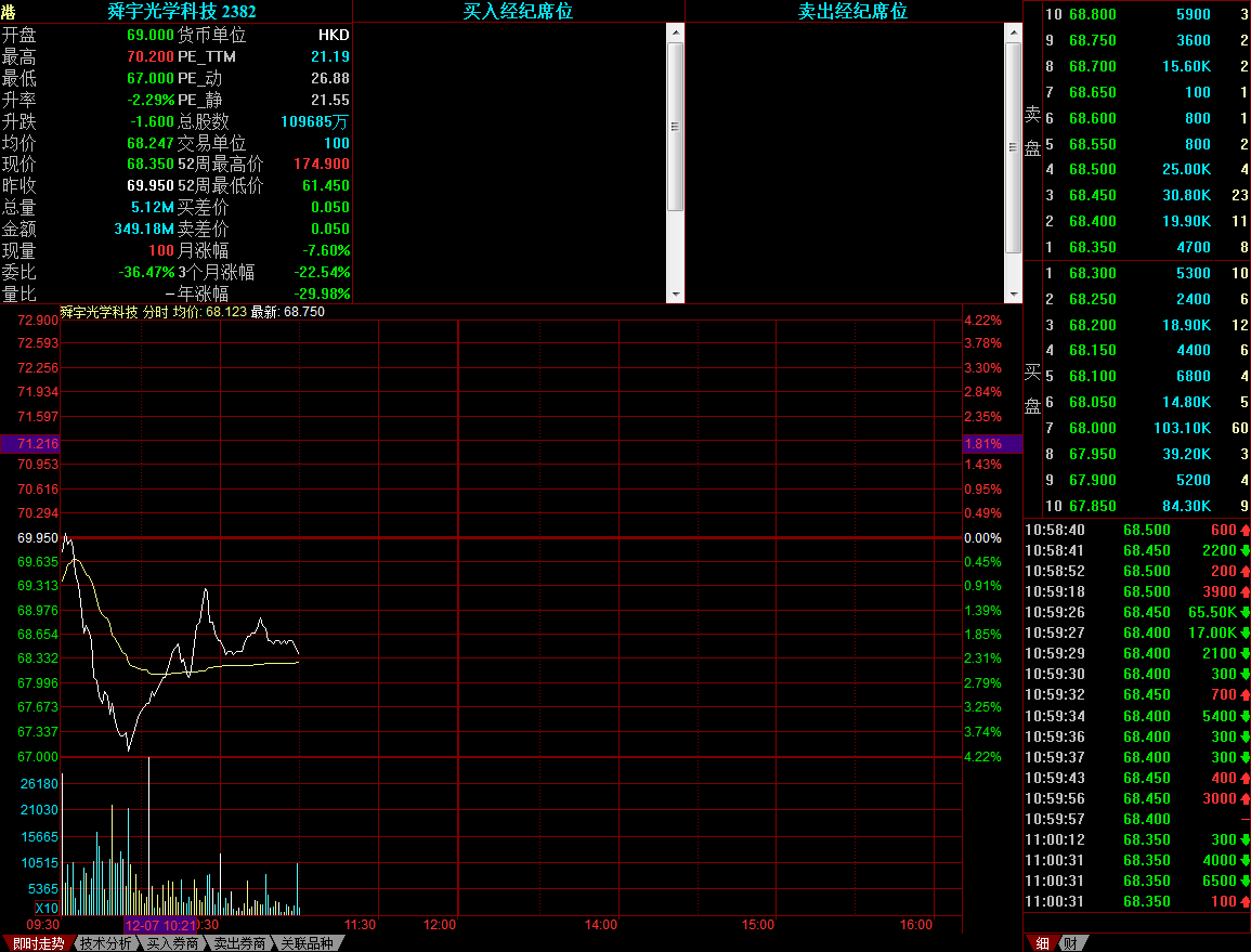 花旗发表报告表示,预计舜宇光学(02382)股价于未来30天将会下跌,因同业大立光(03008.TW)公布11月营收按月下滑23%(同比下跌29%)的疲弱数据所拖累,认为内地智能手机客户对手机镜头需求放缓。